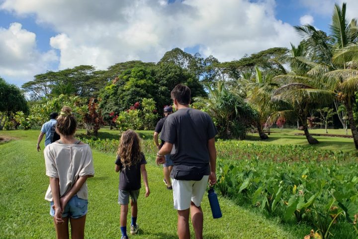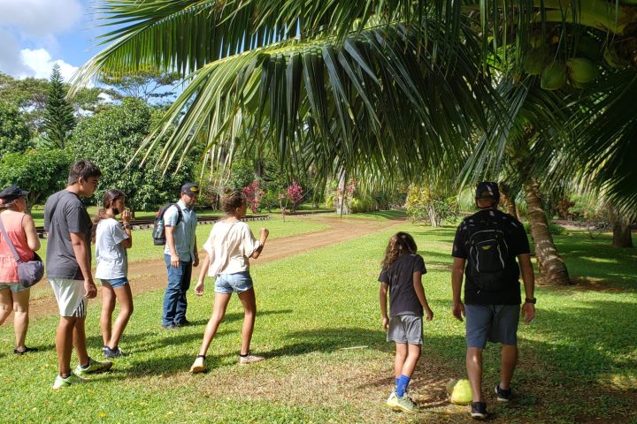 Once out back, your guide will stop the train so you can disembark to explore by foot. You will then follow Kai through stands of Samoan coconut trees, taro loi, pineapple fields, and 22-rows of exotic fruit trees. This is NOT a race; it is a leisurely 60-minute walk over mostly level terrain. You will be stopping frequently to learn about all the beautiful tropical flowers & plants.